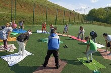 День начался с зарядки.Сегодня состоялся день забавных игр. Дети посетили комнату страха. После ребята просмотрели презентацию « Они выстояли. Защитникам Тулы посвящается». После ознакомления ребята собрали летний букетик из различных цветов.Девочки нашего лагеря познакомились и вырезали бумажные куклы и к ним различные национальные костюмы. -