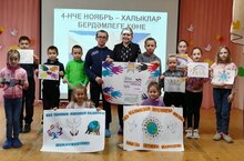 Педагогик -организатор Хәсәнова Инзилә Радик кызы башлангыч сыйныф укучылары белән "Бердәмлек көненә" багышлап рәсемнәр плакатлар ясадылар.