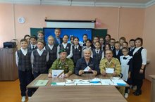 Буген 6нчы һәм 7 нче сыйныф укучылары сугыш ветераннары Бикбаев Камил абый, Гайфутдинов Фаннур абый һәм Габдрахманов Радик абый белән очрашу узды . Алар укучыларга үзләренең батырлыклары, тормыш юллары турында сөйләделәр. Очрашу бик күңелле үтте. Укучыларның солдатларга язган хатларын сугыш ветераннарына тапшырдылды. Сегодня состоялась встреча учеников 6 и 7 классов с ветеранами войны Бикбаевым Камилем, Гайфутдиновым Фаннуром и Габдрахмановым Радиком. Они рассказали ученикам о своем жизненном пути и подвигах. Встреча прошла очень весело. Письмы сделанные учениками солдатам были вручины ветеранам войны.