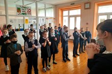 В рамках Дня единых действий, посвященных празднованию Дня космонавтики и 61-летия полета в космос Ю.А.Гагарина, сегодня в школе была проведена утренняя зарядка для учащихся 1-11 классов.