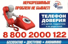 круглосуточно, бесплатно, анонимноДетский телефон доверия создан чтобы ребенок в трудных для него ситуациях мог обратиться за помощью, обсудить свои проблемы, посоветоваться.