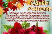 Самые теплые и искренние поздравления с Днем учителя! Желаем вдохновения, терпения, искренних улыбок учеников, благодарности от родителей. Пускай вдохновенно начинается каждый новый день. Будьте здоровы, дорогой учитель, наставник, мудрый советчик. Спасибо за знания, опыт и душевное тепло.