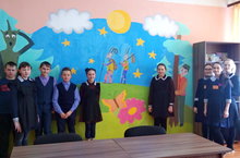 Ученики 7 и 6 класса приняли активное участие в создании настенной росписи по мотивам сказок великого народного поэта Габдуллы Тукая в кабинете родного языка...