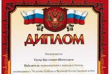 Поздравляем педагога дополнительного образования Шамсуарова Тагира Ярулловича Победителя муниципального конкурса чтецов, посвященного 70-летию Победы в Великой Отечественной войне "У обелисков голову склоняя..."