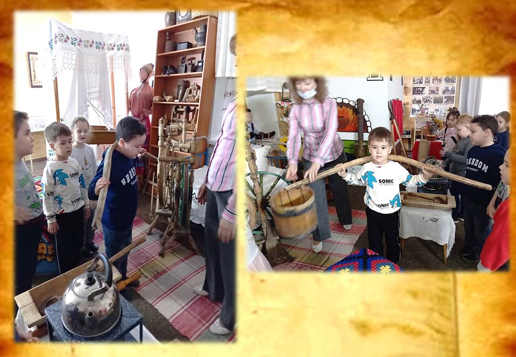 Сегодня дошкольники подготовительной к школе группы побывали в краеведческом музее "Дома детского творчества", где их познакомили со старинным предметами народного быта и народными промыслами.