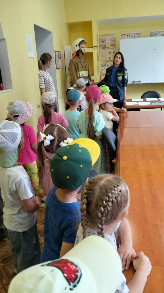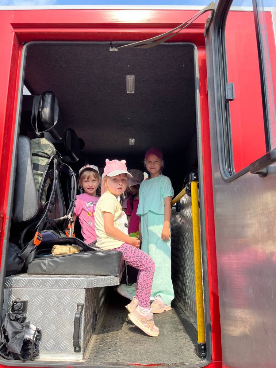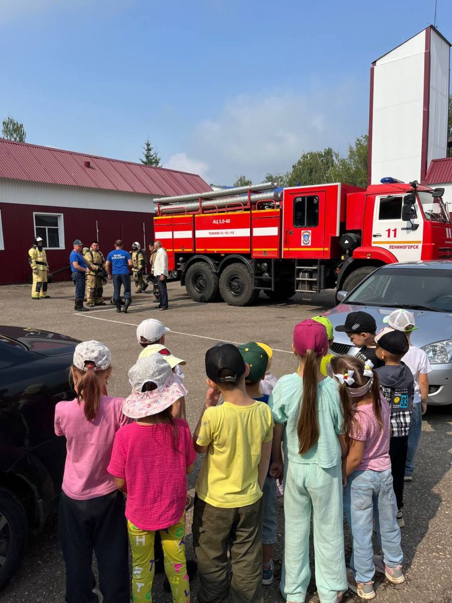 В пожарной части ребятам провели экскурсию по зданию, показали караульные помещения, помещение для отдыха. Пожарный показал ребятам предметы боевой одежды, пожарно-спасательное оборудование. Сотрудники рассказали ребятам и об имеющихся в распоряжении пожарной части пожарных машинах, что с ними связано, как они работают, чем оборудованы. Дети с большим интересом слушали и задавали вопросы. Школьники узнали много полезной информации из беседы с теми, кто занимается предупреждением, тушением пожаров и спасением людей.