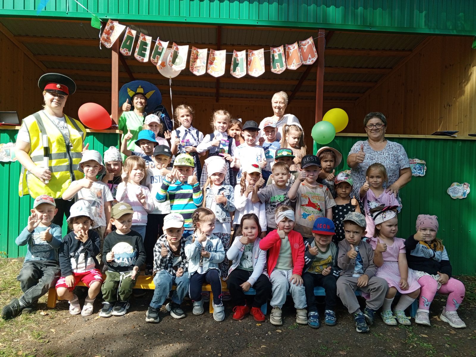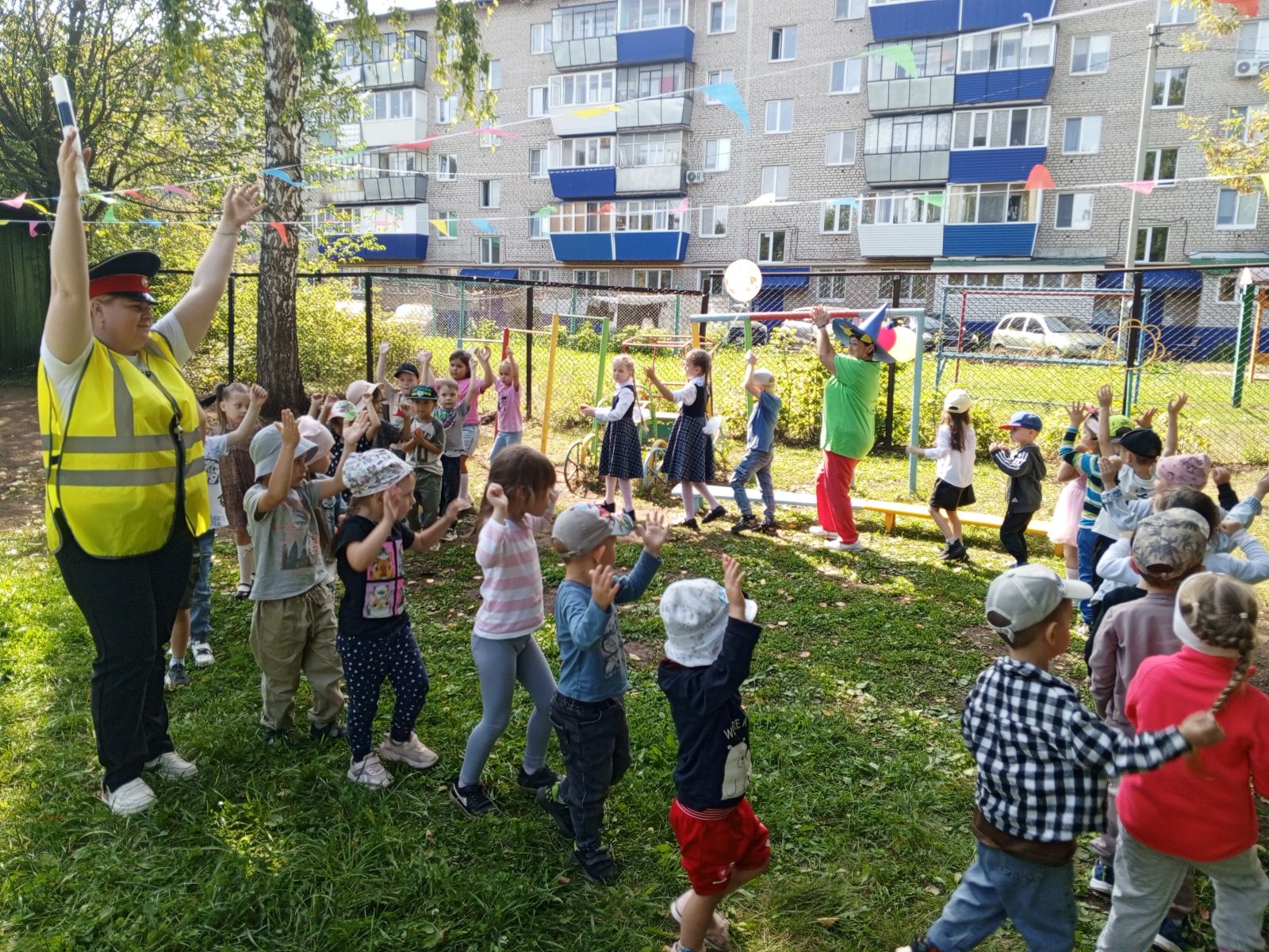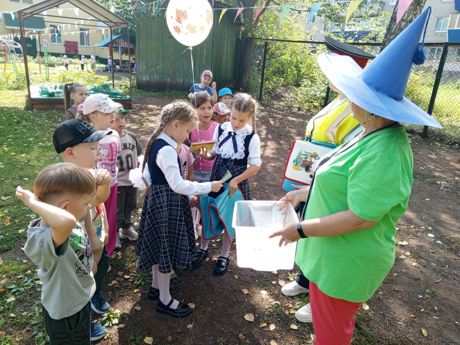 1 сентября 2025 года в нашем детском саду прошел ежегодный праздник, посвященный Дню знаний. Прозвенел звонок и на самокате въехал Незнайка, который торопился в школу, но не знал, что нужно брать с собой да и еще по дороге умудрился нарушить правила дорожного движения для пешеходов. Дети вместе с инспектором Дорожного движения помогли ему сложить в портфель школьные принадлежности, рассказали как надо передвигаться по проезжей части, если с собой самокат и пригласили остаться на празднике.