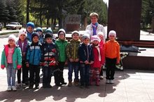 В канун Великого праздника Победы воспитанники детского сада совершили экскурсию по Аллее героев Лениногорского района. В честь памяти воинов, павших за свободу и независимость Родины во время Великой Отечественной Войны горит вечный огонь, здесь постоянно находятся свежие цветы, которые приносят молодожены и те, кто решил почтить память героических воинов.