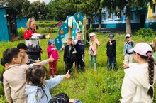 С целью формирования у детей отношения к празднику как к чудесному, радостному событию; закрепления, обобщения знаний детей о летнем времени года, в детском саду прошло развлечение «Слева - лето, справа – лето! Очень нравится нам это!». Дети путешествовали по разным станциям, на которых рассказывали стихи о лете, отгадывали загадки, играли в игры. В заключении детей ждал сладкий сюрприз, подарок лета - яблоки.// Балаларда бәйрәмгә карата мөнәсәбәт формалашу, матур, шатлыклы вакыйгага; балаларның җәйге вакытлары турында белемнәрен ныгыту, гомумиләштерү максатыннан, балалар бакчасында «Сукыр - җәй, уңнан - җәй! Бу безгә бик ошый!" Балалар төрле станцияләрдә сәяхәт иттеләр, анда шигырьләр сөйләделәр, табышмаклар таптылар, уеннар уйнадылар. Тоткынлыкта балаларны татлы сюрприз, җәй бүләге - алма көтте.