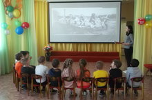 Сегодня в старшей группе прошло мероприятие, посвященное Дню Победы. Дошкольники читали стихотворения, просмотрели тематическую презентацию с озвучиванием Левитана важнейших событий военных лет. В сценке «Брат и сестра» ребята показали мужество не только взрослых, но и детей. Военный антураж подчеркнул значимость праздника и поддержал настроение участников.