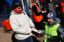 Отряд безопасности, состоящий из воспитанников подготовительной к школе группы, раздавали прохожим световозвращающие повязки.