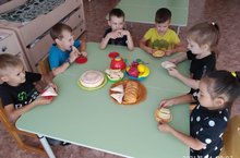Для детей старшей группы Ситдикова Р.Ш., вооспитатель, провела тематическое меропрятие “Татарское гостеприимство”. Целью такого мероприятия стало ознакомление детей дошкольного возраста с традициями и культурой татарского народа. Педагог рассказала о традициях и обычаях татарского народа, а также ребята познакомились с названиями татарских блюд, поиграли в забавные игры «Самовар», прослушали сказку «Чак-чак» (имитация движении), выучили татарские народные пословицы. Праздник прошел в дружной, душевной атмосфере. - 2021 елның 14 июлендә зур төркем балалары өчен "Татар кунакчыллыгы"дип исемләнгән тематик чара үткәрелде. Әлеге чараның максаты мәктәпкәчә яшьтәге балаларны татар халкының гореф-гадәтләре һәм мәдәнияте белән таныштыру иде. Тәрбияче татар халкының гореф-гадәтләре турында сөйләде, шулай ук балалар татар ашларының исемнәре белән таныштылар. «Самавыр» уеннары уйнадылар, «Чәк-Чәк»әкиятен тыңладылар. Бәйрәм күңелле атмосферада үтте.