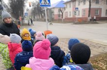 В ходе целевой прогулки «Осторожно - перекресток» воспитанники старшей группы познакомились с перекрестком и правилами поведения на этом участке дороги, расширили знания об улице, активизировали словарь: тротуар, пешеходный переход, сигналы светофора.