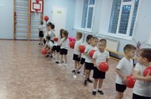 В ходе занятия дошкольники показали свои результаты за 2 месяца кружковой работы: броски в кольцо, подбрасывание мяча вверх и отбивание мяча об пол, ведение мяча и т.д.