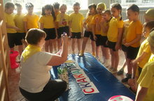 Паникарова Н.Н., инструктор по физической культуре, совместно с воспитанниками отправились в форт «Боярд». Участники команды попробовали свои силы в различных состязаниях на приз форта. Но на этот раз приз не золотые монеты, а спортивный инвентарь. Этот приз висел на видном месте, но чтобы его взять, надо было отгадать, что это. Наши спортсмены добыли 5 ключей, которые дали возможность получить подсказки. С помощью подсказок ребята отгадали название спортивного инвентаря и выложили это слово из букв и получили подарок.