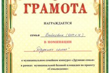 Поздравляем замечательные семьи старшей группы: Байковых и Халиковых с номинацией "Дружная семья" в муниципальном семейном конкурсе "Дружная семья" в рамках муниципальной базовой площадки по проекту "Семьеведение"!!!
