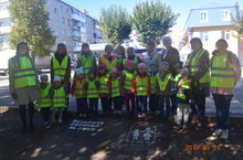 В целях предупреждения детского дорожно-транспортного травматизма и дорожно-транспортных происшествий с участием пешеходов на пешеходных переходах , Рахманова З.М., начальник отделения профилактики ГБУ «БДД» в Лениногорском районе территориального управления в г.Альметьевске совместно с сотрудниками, воспитанниками и родительским патрулем нашего дошкольного учреждения провели акцию «Пешеходный переход». Участники акции подготовили трафареты «Возьми ребенка за руку» и отпечатали их перед пешеходным переходом, напомнив, что дорогу детям нужно переходить с родителями, взявшись за руки! Азалия, воспитанница старшей группы, прочитала стихотворение «Светофор» и объяснила, что существуют регулируемый и нерегулируемый пешеходный переход. Также участники акции объяснили для чего необходимы световозвращающие элементы и как они могут повысить безопасность человека на дороге. Далее родительский патруль вместе с детьми в светоотражающих жилетах показали всем пешеходам, как правильно переходить дорогу.