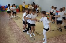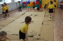 “Сәләмәтлек атналыгы” кысаларында, уртынчылар төреме ата-аналары чакырылган иде. Паникарова Н.Н. физик тәрбия инструкторы,балаларга төсле машиналар булып торырга тәкъдим итте. Юлга чыгар алдыннан машиналар – балалар күнекмәләшү - “техосмотр” үттеләр. Шөгел барышында машиналар күпер буйлап үттеләр ( аяк очында йөрү), киртә аша сикереп үтү, тоннель буйлап узу (дуга аша) биремснәрен үттеләр, “Төсле машиналар” хәрәкәтле уенын уйнадылар. Йомгаклау өлешендә аз хәрәкәтле уен “Үз урыныңны тап” уйнадылар.