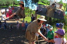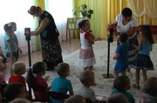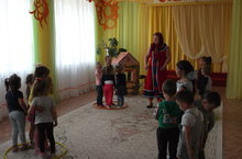 1-нче кечкенәләр төркеме тәрбиячесе, Коршина Ю.Ю., балаларны, авылга Арина әбигә кунакка чакырды. Арина әби, балаларны якты йөз белән каршы алды. Иң элек, ул балаларны үзенең кызыклы табышмаклары белән сынады, ә аннан күңелле хәрәкәтле уеннар уйнатты. Арина әбидә кунакта булу балаларга бик ошады.