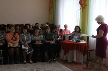теме: «Документационное обеспечение управления ДОУ в реализации образовательной деятельности». Арсланова Р.З., заведующий подготовила выступление –презентацию «Документационное обеспечение управления ДОУ» и на основе нормативно – правовых документах подробно рассказала о требованиях, порядке и условиях оказания платных образовательных услуг. Поскольку приоритетное направление нашего ДОУ – сохранение и укрепление физического здоровья детей, Н.Н.Паникарова, инструктор по физической культуре выступила с презентацией «Сохранение и укрепление здоровья детей посредством физического воспитания», а А.В.Нуриахметова, музыкальный руководитель раскрыла «Актуальность музыкально-оздоровительной деятельности в детском саду». М.Н.Холодкова, воспитатель подготовительной группы презентовала проект «Мозаика Поволжья» и рассказала об использовании этнокультурной региональной составляющей в проектной деятельности. Чтобы повысить эмоциональное состояние гостей и педагогов ДОУ, Ткаченко В.Р., старший воспитатель провела психологический тренинг «Повышение психологической устойчивости и работоспособности педагогических работников». В заключении для поднятия настроения всем руководителям подарили цветы.