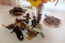 Осень прекрасное время года! Природа осенью богата разнообразием красок, а также природным материалом для творчества детей. Дети подготовительной группы, используя этот разнообразный материал изготовили поделки.