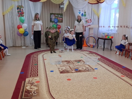 На празднике дети читали стихи о защитниках России, пели песни: «Мой любимый папа», «На границе», «Бравые солдаты». Мальчики и девочки участвовали в спортивных играх и наглядно показали, какими качествами должны обладать защитники нашей Родины.