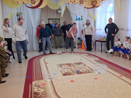 После разминки малыши с энтузиазмом приступили к выполнению различных заданий: "Полоса препятствий", "Кто быстрее соберёт снаряды" и другие. Папы помогали ребятам во всех конкурсах. Несмотря на свой юный возраст, наши дети проявили удивительную ответственность и старание, с легкостью справляясь с заданиями. Они показали свою ловкость и смелость, зарядившись бодростью и отличным настроением.