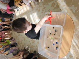 Малыши первой младшей группы в международный день воды, провели интересное занятие. Малышам рассказали что такое вода, познакомили детей с некоторыми свойствами воды. Поиграли в "Морские сокровища", устроили "Самодельный водопад". И сделали вывод, чем выше "водопад", тем он громче.