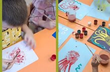 Дети средней группы на кружке «Акварелька» познакомились с приемами нетрадиционного рисования на примере выполнения работы в технике рисование с помощью пузырчатой пленки и изобразили Осьминога????