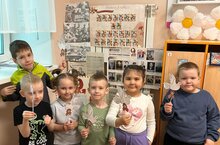В средней группе детям рассказывали о важных моментах нашей истории, доступно объяснили, что такое День Победы, почему мы так свято к нему относимся, почему это радостный праздник со слезами на глазах, почему нам нельзя его забывать.