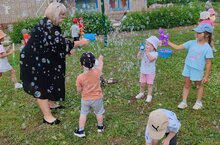 Ребятишки активно принимали участие в играх: "Озорные пузыри", "Кто поймает на ладошке", "Самый быстрый пузырь", "У кого больше пузырь". Охотно отвечали на вопрос - "На, что похожи мыльные пузыри?" Весело и дружно разгадывали загадки, танцевали. Дети с радостью запускали мыльные пузыри, потом продолжали веселье с мыльными пузырями на игровых площадках. Праздник получился веселый, забавный, энергичный и завершился праздничной дискотекой.
