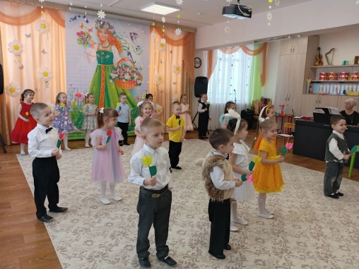 В детском саду прошли веселые, яркие утренники, посвященные Международному женскому дню 8 Марта. Мамы и бабушки участвовали в музыкальных номерах, танцевали, играли и веселились.