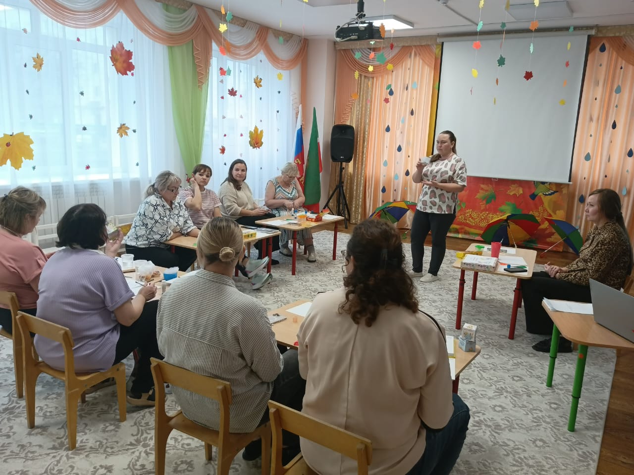 Старший воспитатель Таратута И.А. выступила с анализом тематической проверки "Речевое развитие дошкольников в условиях ДОУ". Педагоги Резяпова Э.М., Тимирова М.А. и Гисматова И.С поделились своим педагогическим опытом, провели мастер-классы.