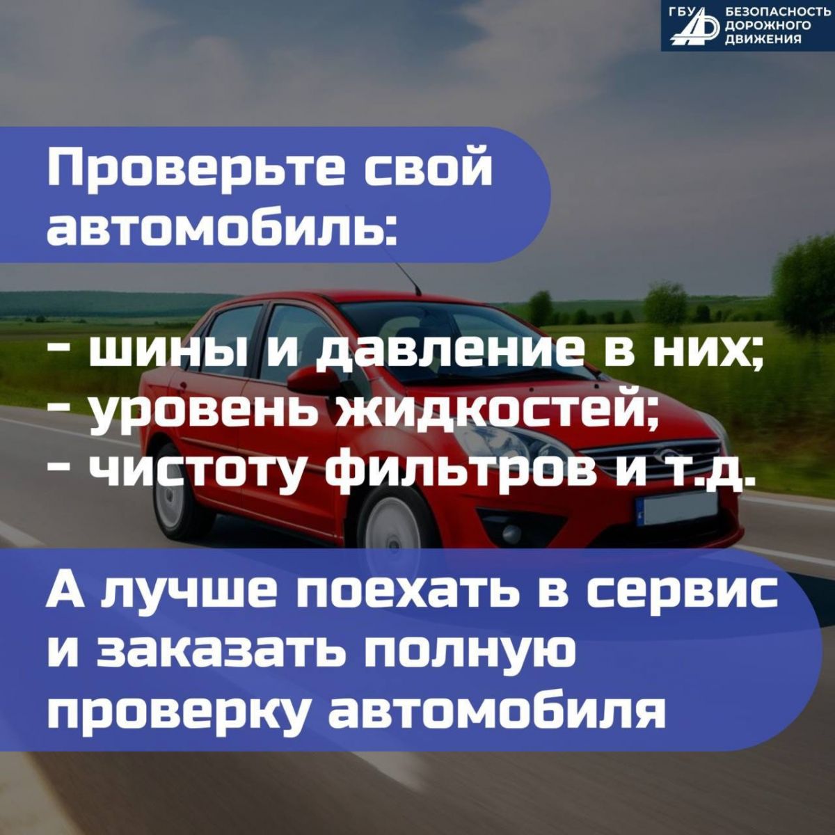 "За безопасность дорожного движения" 06.08.2025Путешествия на собственном автомобиле: что нужно знать?Собрали рекомендации для комфортного и безопасного автопутешествия на дальние расстояния.О каждом пункте более подробно – в наших карточках...