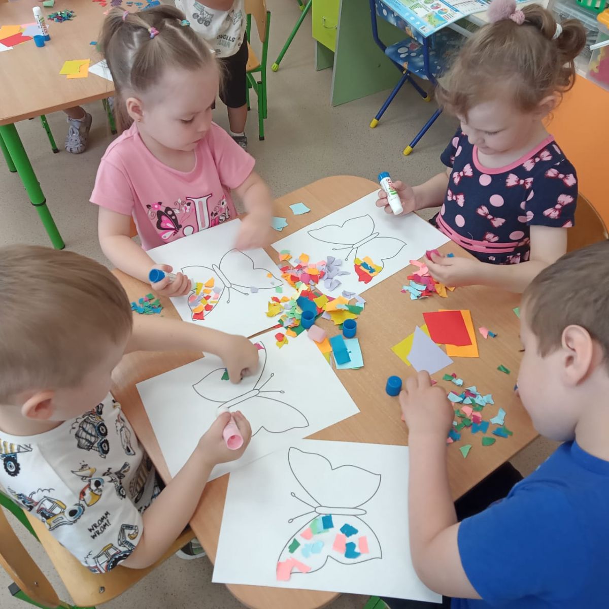 Лето начинается, когда появляются первые цветы, первые листочки, и, конечно же, бабочки − самые красивые насекомые на земле. Их неповторимой и разнообразной расцветке и воздушным порханием можно любоваться постоянно. Сегодня дети средней и старшей групп узнали много нового и интересного об этом красивом насекомом (о жизни и строении бабочки), поговорили с ребятами и о том, что бабочек надо беречь. Не обошлось в этот день и без художественного творчества - выполнили аппликацию бабочек из рваной бумаги.