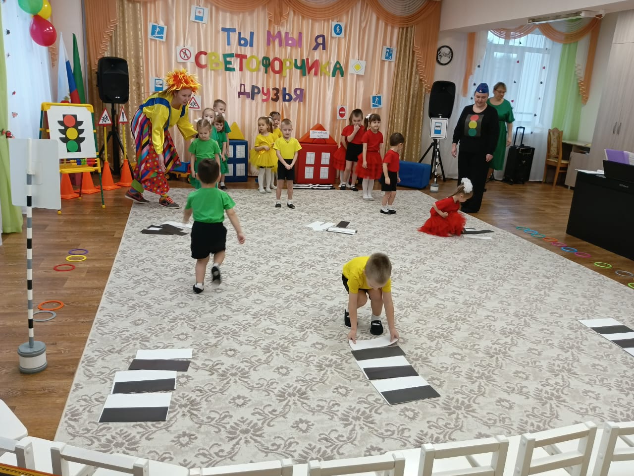 Сегодня прошло весёлое развлечение в средней группе. Светофор и озорной Карлсон повторили с детьми правила дорожного движения, играли, танцевали, пели песни и читали стихи.