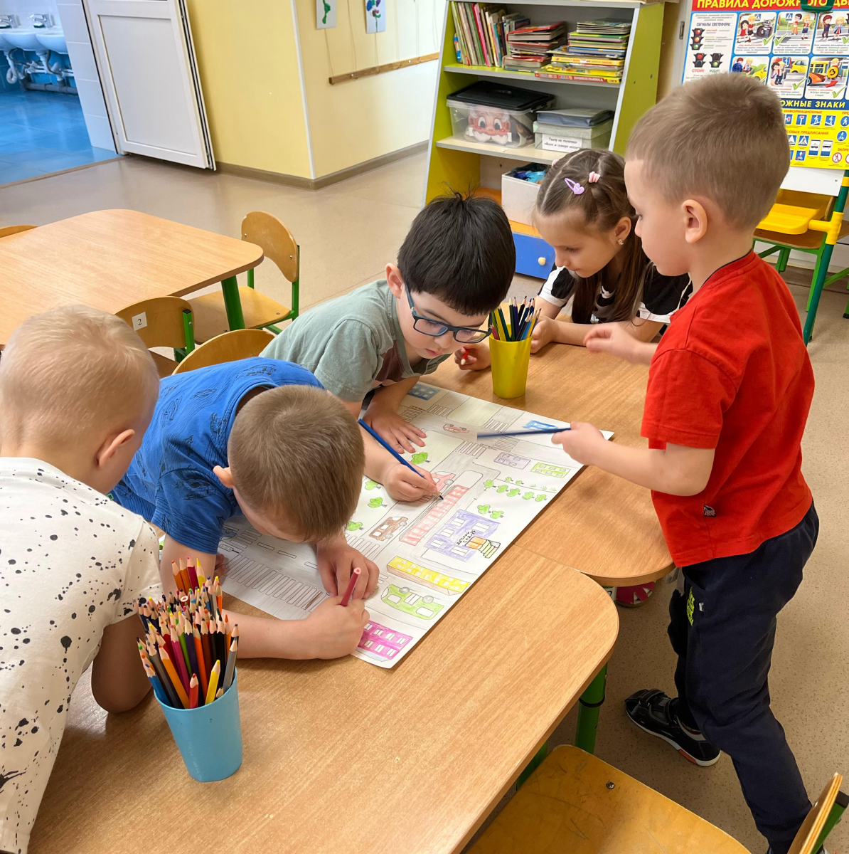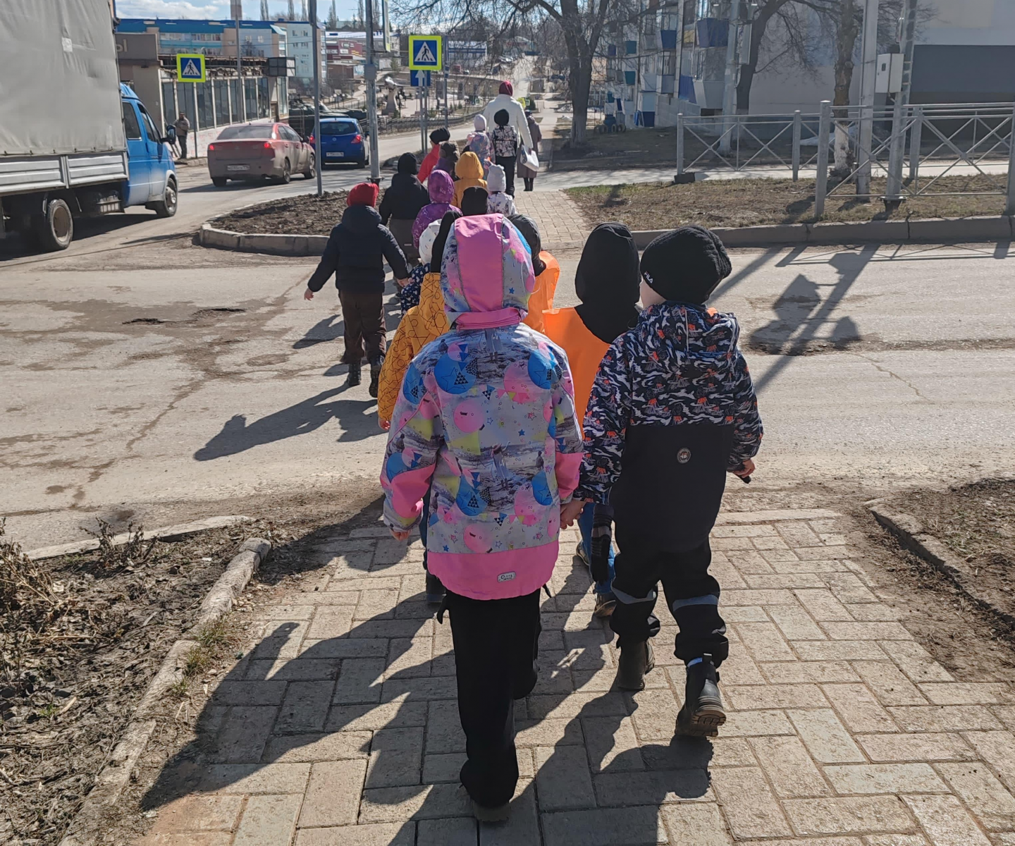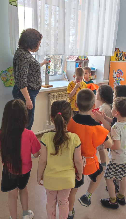 В детском саду прошла неделя ПДД. Воспитанники подготовительной к школе группы отправились на экскурсию к светофору. Дети старшей группы провели викторину "Знай правила движения". Средняя группа с воспитателем изготовили учебное пособие " Безопасная дорога в детский сад".