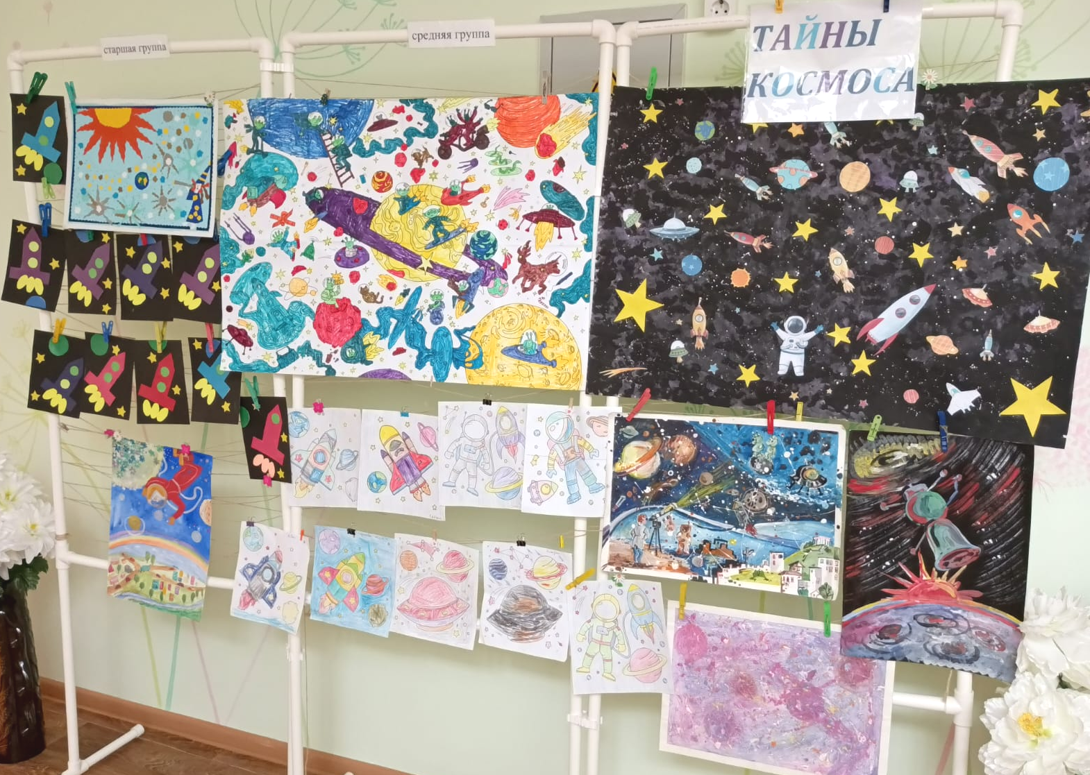 В детском саду прошли увлекательные мероприятия, посвящённые Дню космонавтики. В старших группах прошли беседы с рассказом о первом полёте Юрия Гагарина, о космическом пространстве, планетах. Была оформлена выставка детских творческих работ "Тайны космоса".