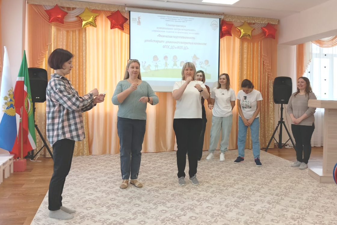 Сегодня в детском саду прошел семинар-практикум "Физическая подготовленность детей старшего дошкольного возраста к контексте ФГОС ДО и ФОП ДО" муниципального центра методического сопровождения педагогов по физическому воспитанию