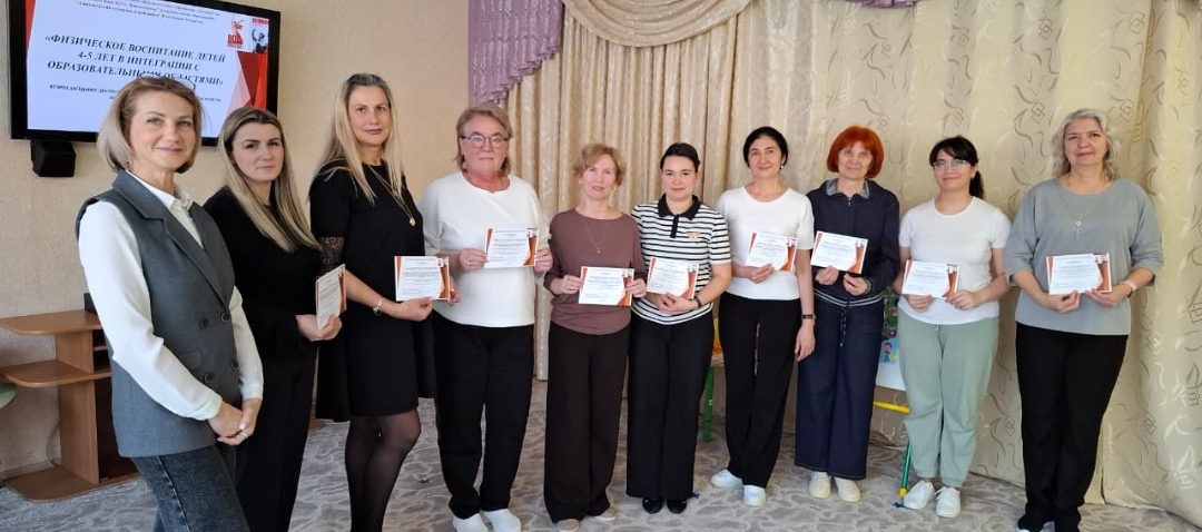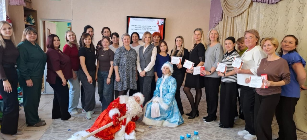 9 декабря на базе МБДОУ №29 прошло второе заседание центра методического сопровождения педагогов по физическому воспитанию "Физическое воспитание детей 4-5 лет в интеграции с образовательными областями". В заседании приняли участие 24 педагога из дошкольных образовательных учреждений города. 11 педагогов поделились с коллегами своим опытом работы через мастер-классы, открытый показ образовательной деятельности и презентации видеофрагментов работы. В конце продуктивной работы, педагогов поздравили с наступающим Новым годом, Дед Мороз и Снегурочка.