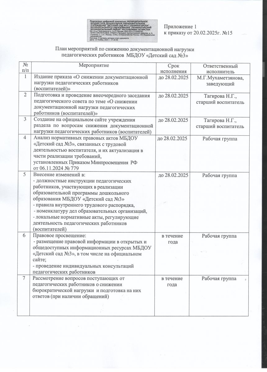 План мероприятий по снижению документационной нагрузки педагогических работников