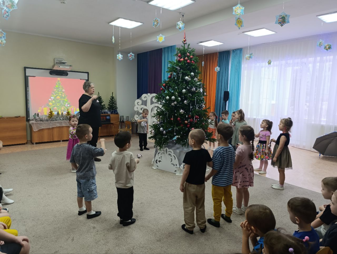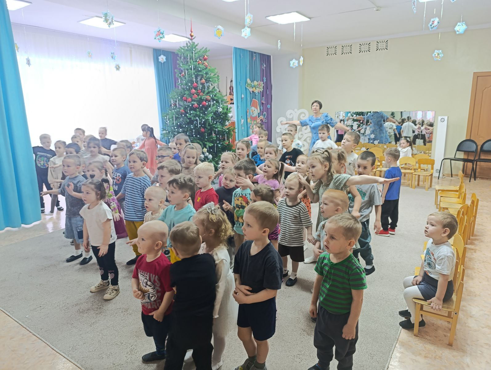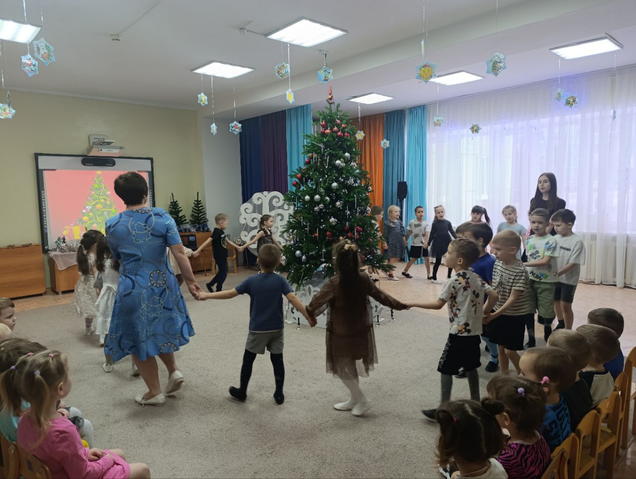 На прощание новогодняя красавица, в последний раз в этом году подарила сияние своих огней. В завершении праздника дети прощались с ёлкой до следующего Нового года.