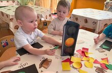 Дети первой младшей группы «Звездочки» познакомились с таким замечательным сигнальным устройством, как светофор, какие цвета он имеет и что каждый цвет сигнализирует. Ребята не только научились распознавать цвета светофора и понимать их значение, но и узнали о важности соблюдения правил дорожного движения. Благодаря активному участию в аппликации ребята также развивали мелкую моторику, воображение и творческие навыки. -