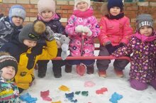 Зимой отмечают самый яркий, веселый и любимый праздник детей и взрослых Новый год. Все люди на нашей земле готовятся к встрече Нового года. Украшают жилище, улицу. Как сделать групповой участок нарядным и ярким придумали дети старшей группы "Сказка". В рамках недели "Зимняя лаборатория" в процессе исследовательской деятельности "Что такое лёд?" ребята узнали, что вода в замерзшем состоянии, да ещё и раскрашенная в разные цвета и залитая в формочки может стать оригинальным украшением. Вот такие цветные льдинки - украшения получились у них! -