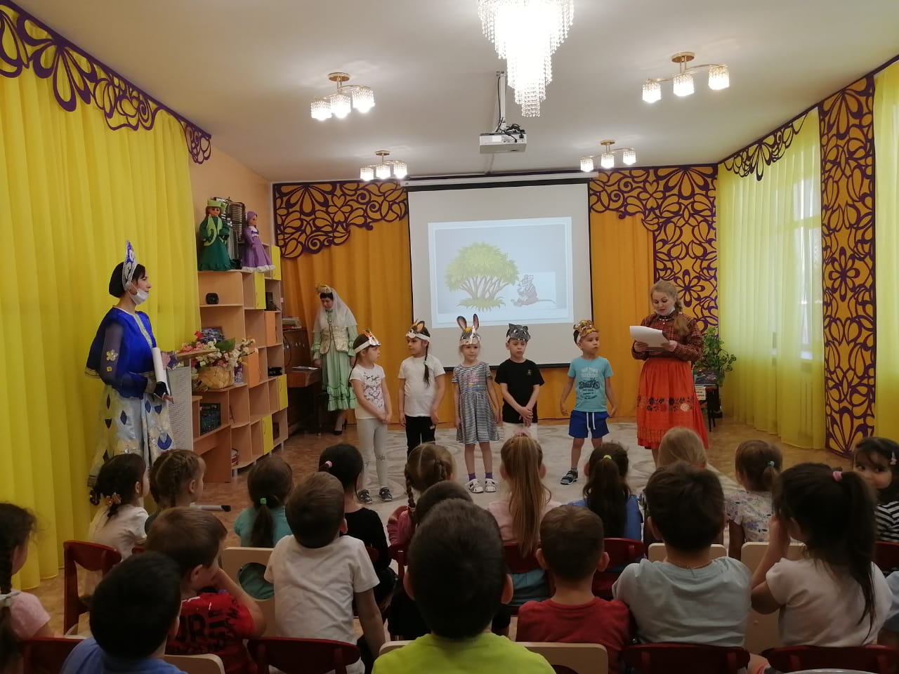 Сегодня в детском саду прошёл литературный час на тему "Тел-күңел көзгесе", который организовали сотрудники национально - краеведческого отдела Центральной библиотеки им. Г. Тукая для наших воспитанников старшей и подготовительных к школе групп.Библиотекари рассказали о родном языке, о народах, проживающих в Республике Татарстан. Детям понравились татарские народные игры “Йөзек салыш”, “Түбәтәй”, загадки. Чувашская народная сказка “Мышка Вострохвостик” вызвала у детей интерес к сказкам народов Татарстана. А так же, ребята вспомнили русские народные пословицы и поговорки. Вечер прошел в целях сохранения родного языка и традиций народов.Балаларга туган тел, милләтләр турында кызыклы мәгълүмат җиткерделәр. Татар халкының “Йөзек салыш”, “Түбәтәй” уеннары, табышмаклар балалар күңеленә хуш килде. Рус халык мәкальләрен дә искә төшереп үттеләр. Чуваш халык әкияте “Мышка Вострохвостик” исә балаларда аеруча кызыксыну уятты. Сабыйлар әлеге әкиятне сәхнәләштереп үзләренең талантлы икәнлекләрен күрсәттеләр. Әлеге чара телебезне, гореф-гадәтләребезне саклап калу максатыннан үткәрелде. -