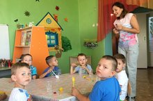 В нашем саду стартовала тематическая неделя "Весёлая лаборатория".Дети в группах "Звёздочки" и "Радуга" повторили свойства воды.Опытным путём пришли к пониманию того,что вода может изменять цвет .Через игру "Прятки с водой" решили проблемную ситуацию :"Как спрятать игрушку в воде".Было очень интересно!