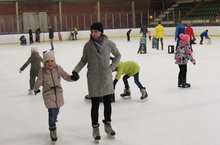 Сегодня, в выходной день, большой и дружной компанией детей, родителей и педагогов детского сада мы снова осуществили выход в Ледовый дворец покататься на коньках.Кататься на коньках - это самое настоящее наслаждение! Даже не имея опыта, можно получить от такого времяпрепровождения массу удовольствия. Кроме того, такие походы сближают родителей, детей и педагогов, дают прекрасную возможность создания атмосферы взаимопонимания и сотрудничества, укрепляют здоровье, приобщают к здоровому образу жизни, развивают физические качества и навыки.Кто-то уже хорошо умеет кататься и с лёгкостью скользил, показывая сложные трюки, а кто-то из детей и взрослых только учился - неуверенно держались за бортик огромного катка и еле - еле пытались удержать равновесие, собираясь с силами и мужеством. Конечно, взрослые всё время были рядом с детьми. И свежий, морозный воздух, и весёлая музыка, и бодрое настроение, и присутствие надёжного плеча придавали детям уверенности в первых шагах на льду. И уже в конце нашего заезда, практически все , самостоятельно стояли посреди льда и маленькими, скользящими движениями катились вперёд! -