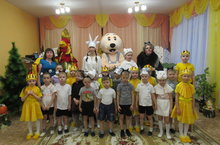 Мугинова Минзиля Тауфиковна, воспитатель по обучению татарскому языку, реализуя работу с русскоязычными педагогами и сотрудниками ДОУ по проекту "Язык души моей", сегодня пригласила детей детского сада на премьеру музыкального спектакля "Волк и семеро козлят" на татарском языке. Русскоязычные педагоги (и другие русскоязычные сотрудники ДОУ) показали своё мастерство не только в создании оригинальных образов, но и во владении татарским языком. Дети с восторгом, громкими апплодисментами и овациями благодарили артистов за весёлое представление.