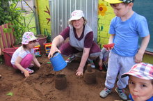 Сегодня ребята средней группы "Почемучки" вместе с воспитателем Екатериной Анваровной строили различные постройки из песка. Чего тут только нет: и пирамиды, и торты, и гаражи для машин!Весело и радостно на нашем участке!