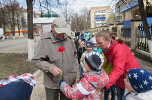 В преддверии празднования 72-й годовщины Победы в Великой Отечественной войне воспитанники подготовительной группы "Лучики" вместе с воспитателями приняли участие в акции «Цветок ветерану». Прохожие были несказанно рады и удивлены, когда к ним подбегали ребятишки и протягивали цветы. Счастье и улыбка озаряла лица детей и жителей нашего города. Данное мероприятие было призвано показать дошкольникам, какое большое историческое значение имеет День Победы в истории развития нашей страны. Это развитие и воспитание патриотических чувств на ярких примерах героизма наших воинов, храбрости и мужества народа.